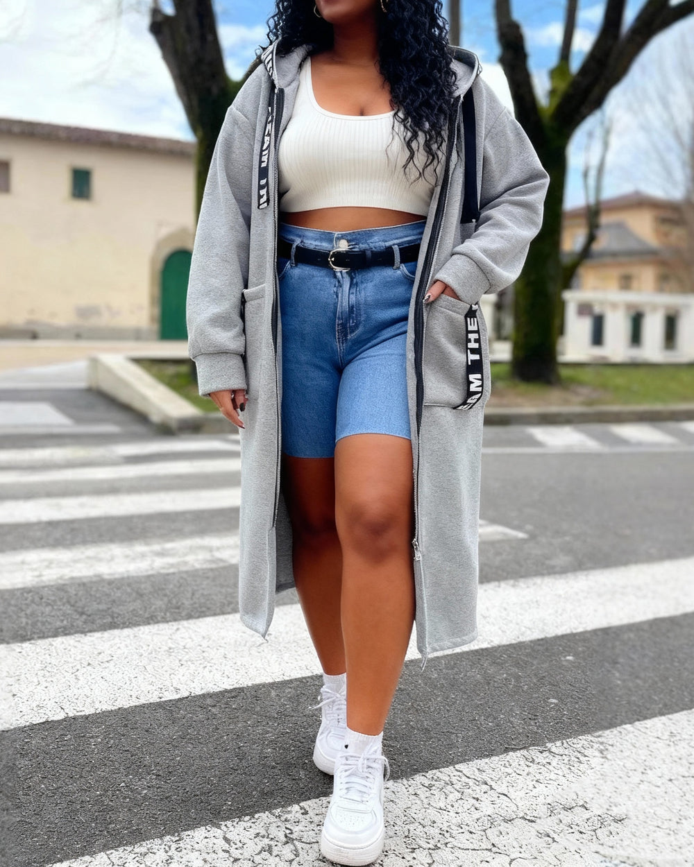Hooded Sports Fleece-lined Sweatshirt Casual Long-sleeved Zipper Jacket