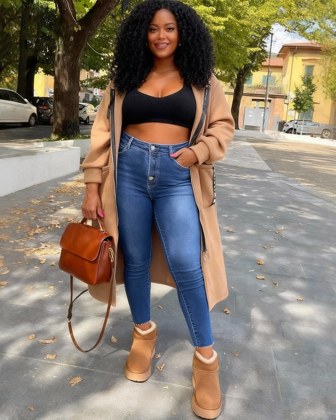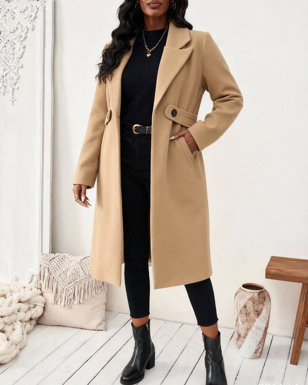 Autumn And Winter Woolen Coat Long Lapel Slim Fit Woolen Coat