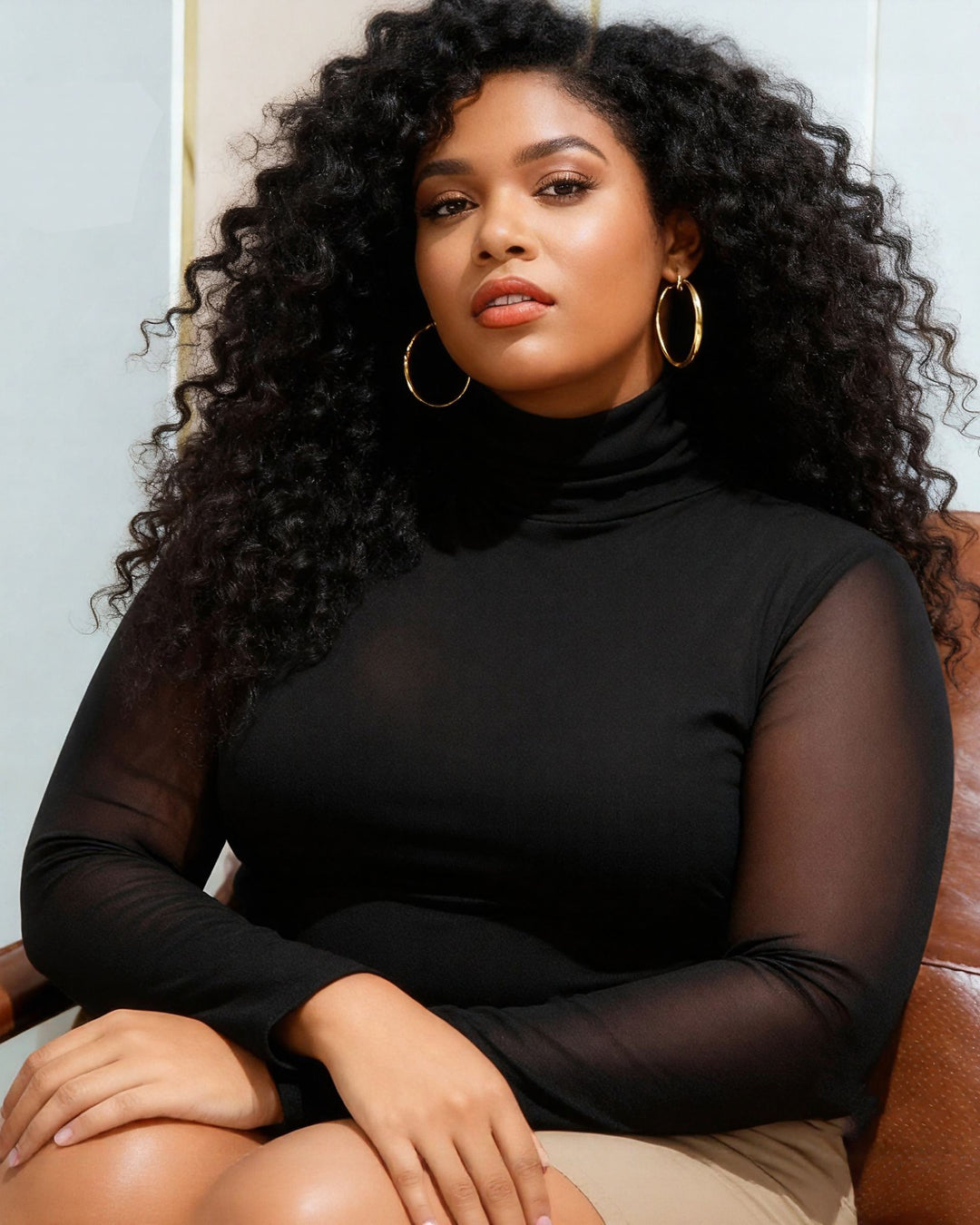 High Collar Mesh Base Shirt Thickened Warm Long Sleeve Stretch Top