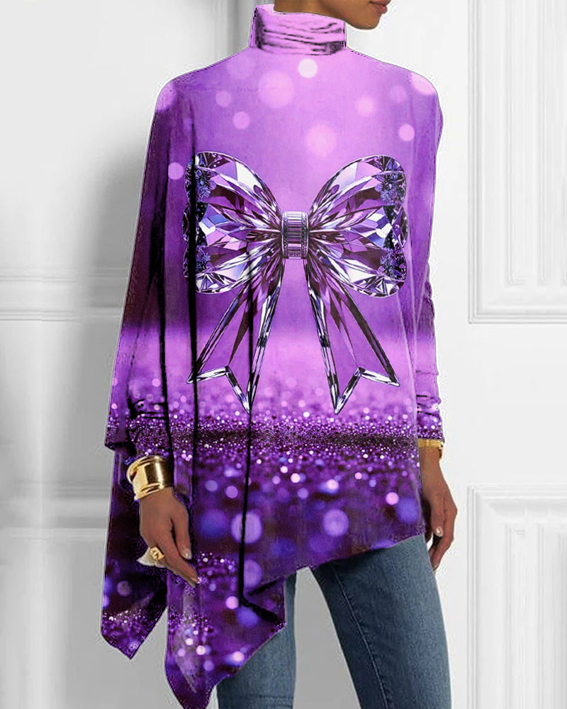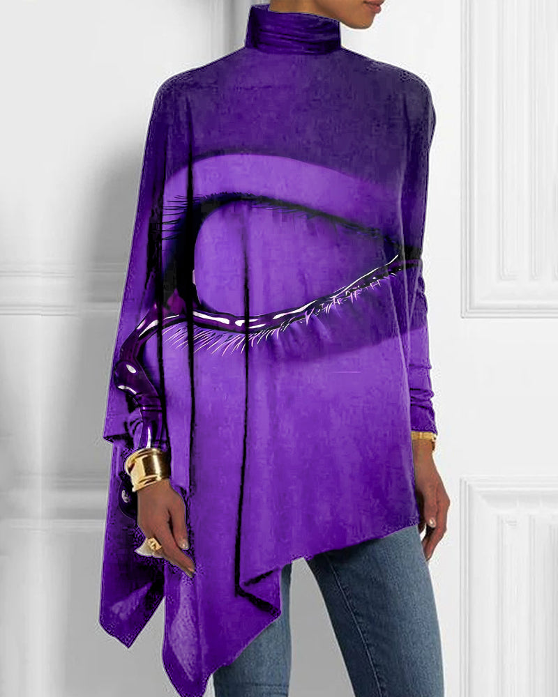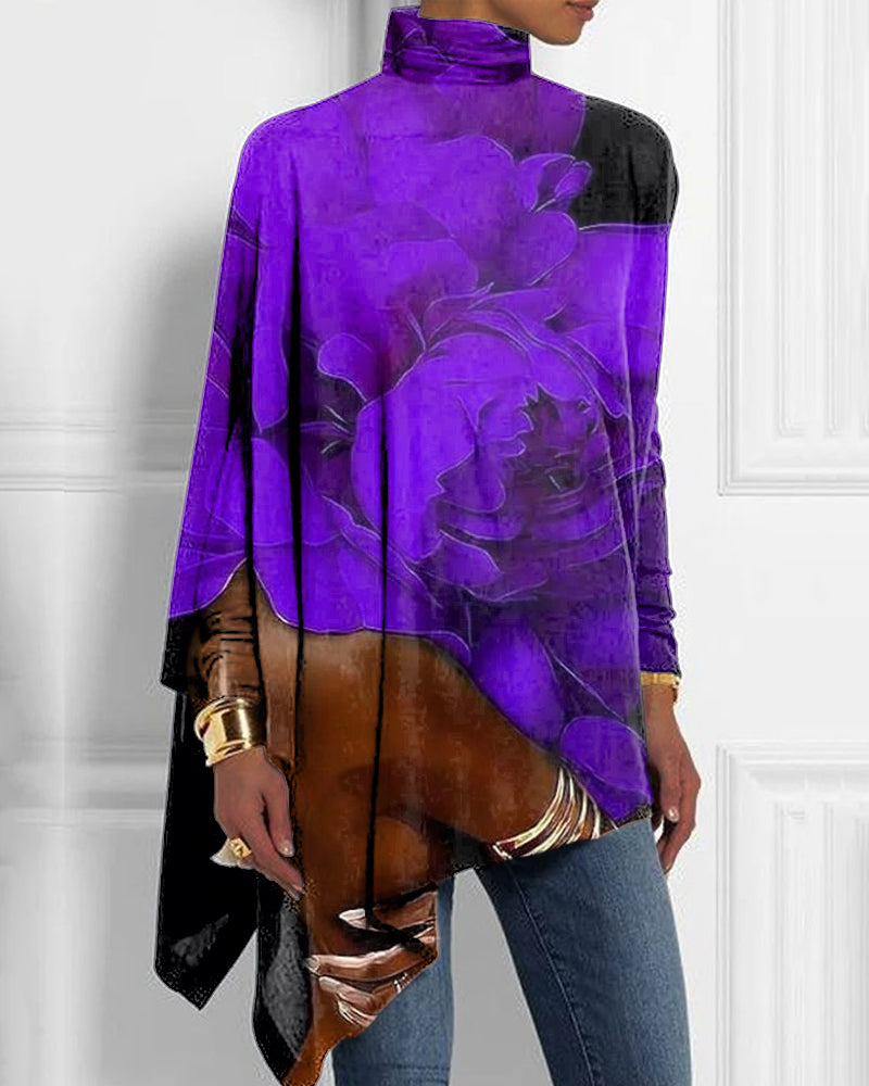We Support The Women Printed Turtleneck Long-sleeved Top