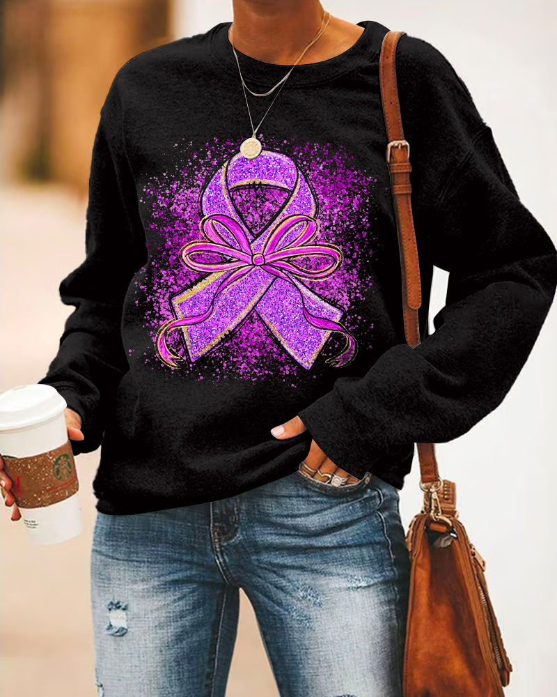 Purple Ribbon Woman for Change Cotton Long Sleeve Hooded Sweat