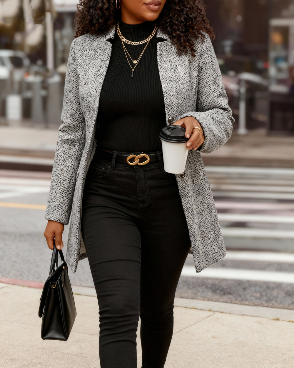 Open Button Lel Plush Coat Loose Elegant Commuter Long Coat