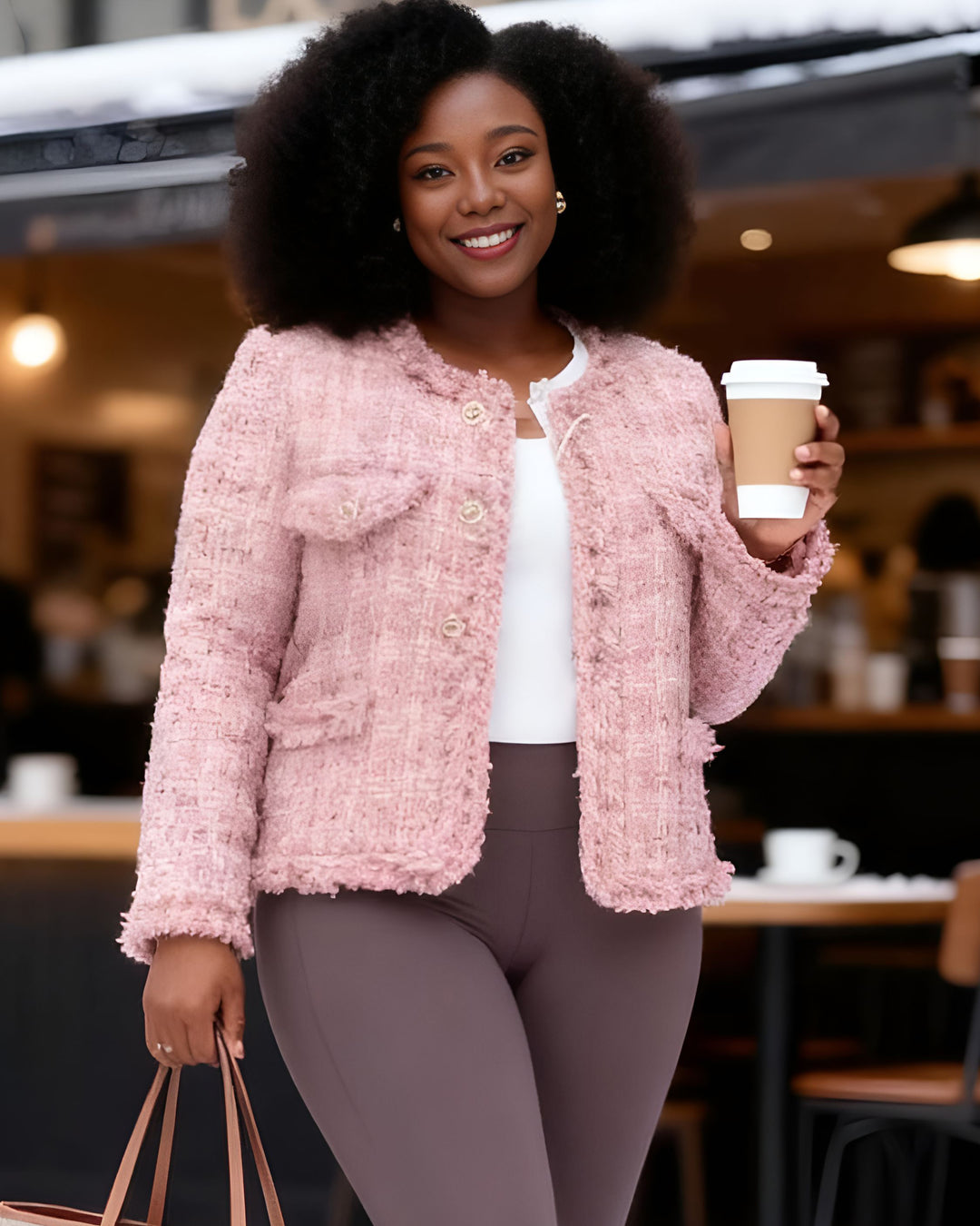 Pocket Plaid Lambskin Jacket Button Plush Coat