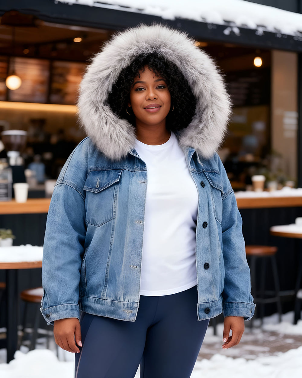 Short Jacket Cotton-padded Jacket Fleece-lined New Style Cotton-padded Jacket Loose Denim Fur Collar Thickened Jacket