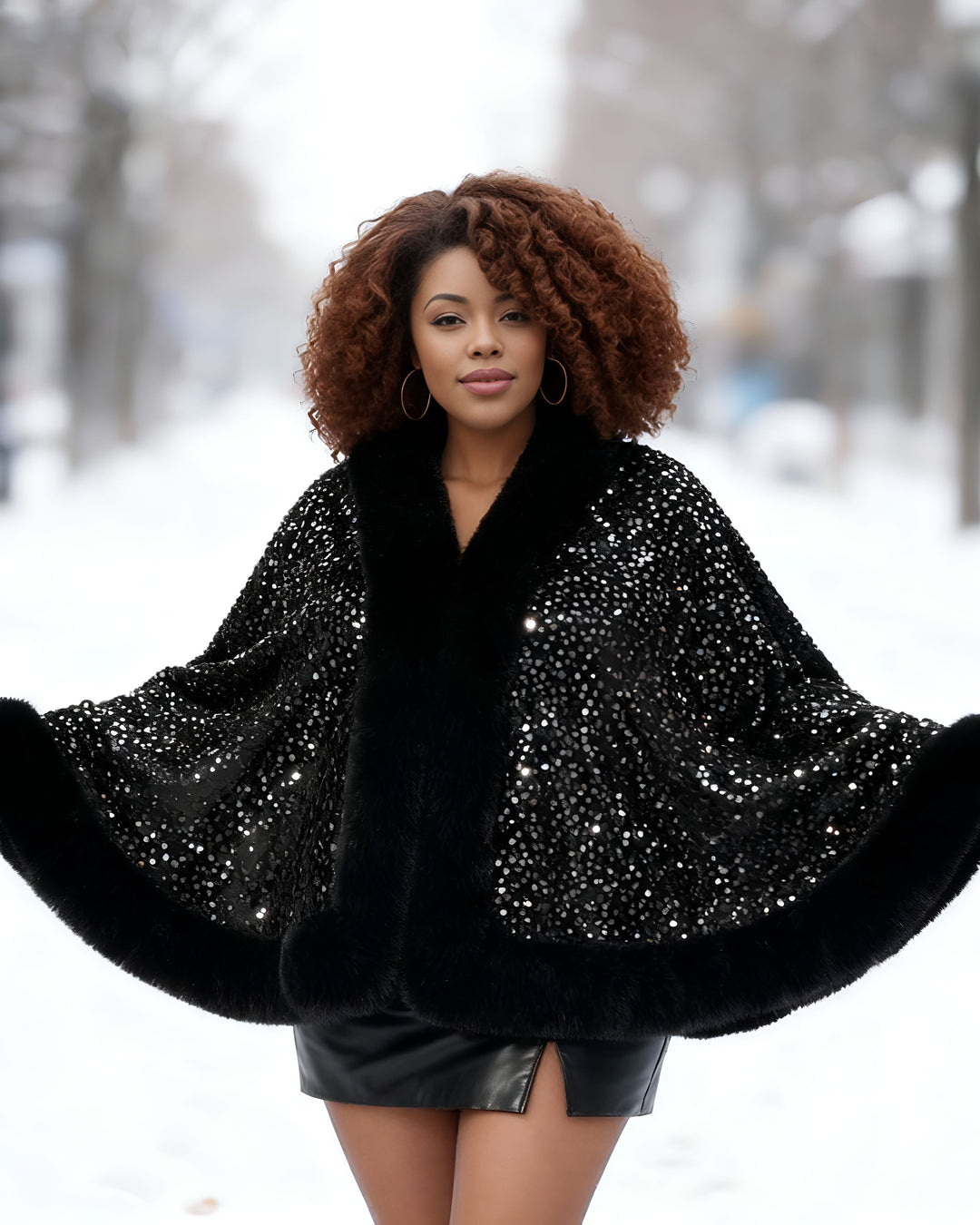Women's Solid Color Faux Rex Rabbit Fur Large Size Cape