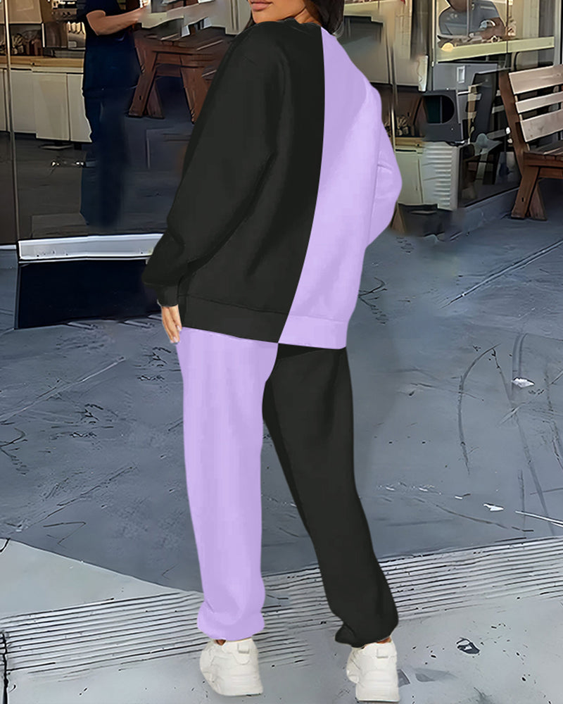 Color-blocked Butterflies and Stars Crew Neck Sweatshirt Two Pieces Set