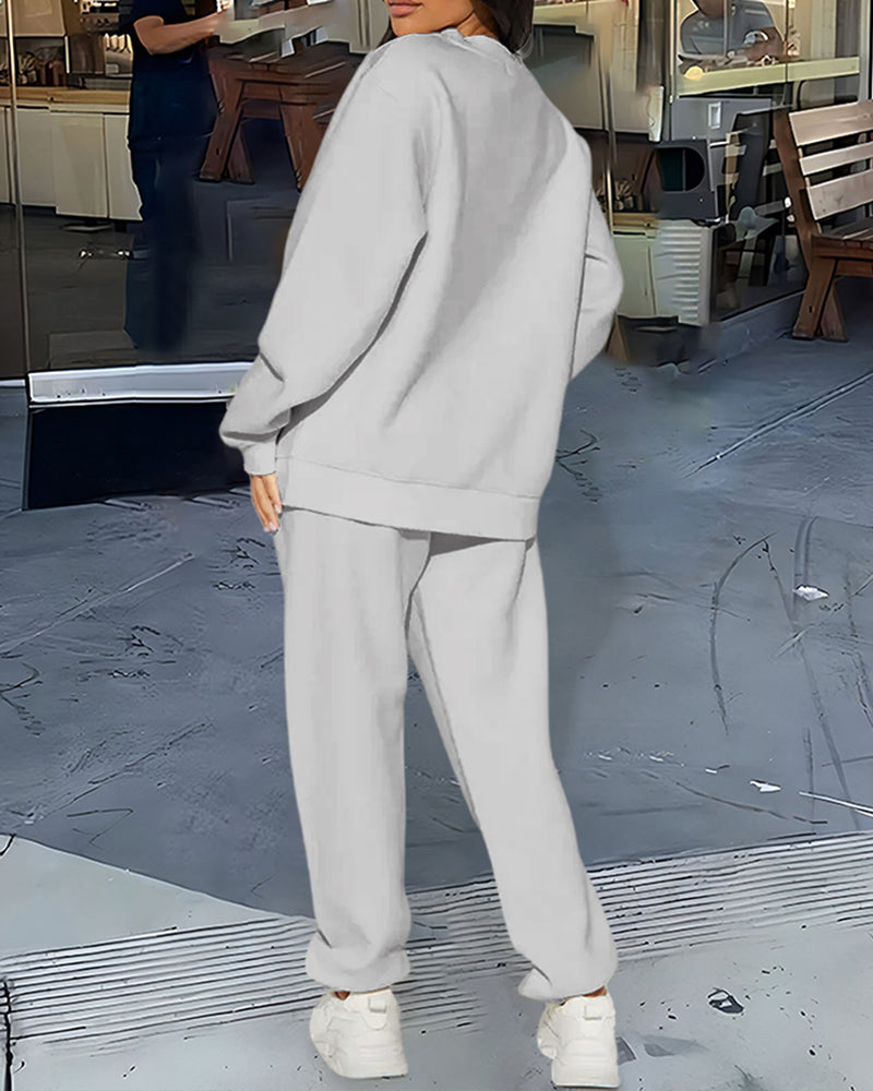 New York Denim Patch Print Crew Neck Sweatshirt Two Pieces Set