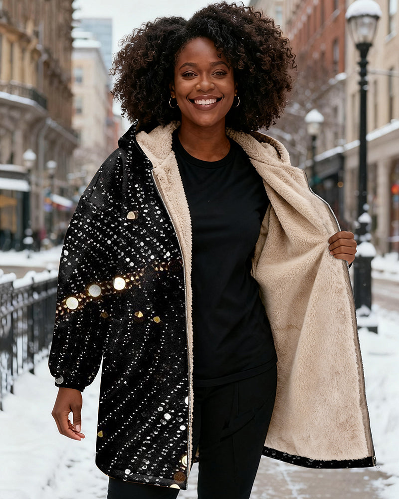 Fun Sequin Prints Long Sleeve Zip-Up Fleece Long Coat