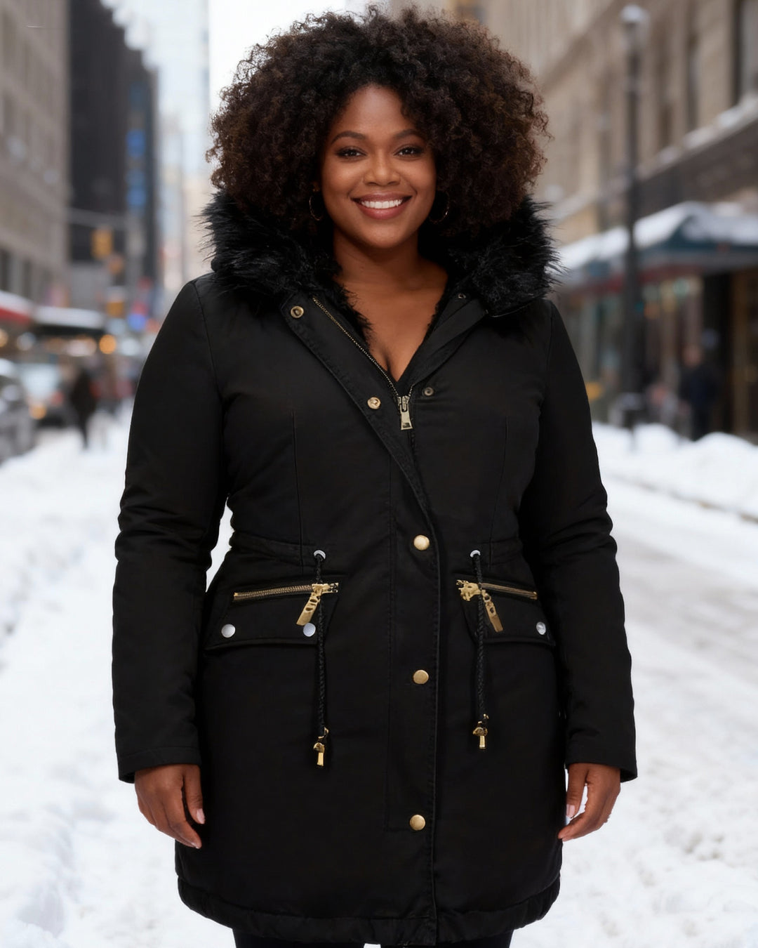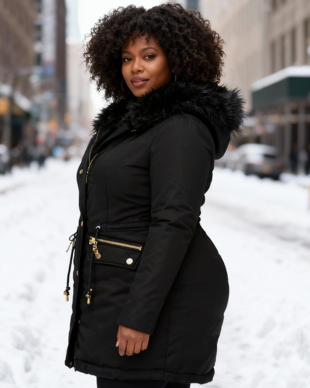 Jacket With Waist And Fluffy Collar Pocket Women's Jacket