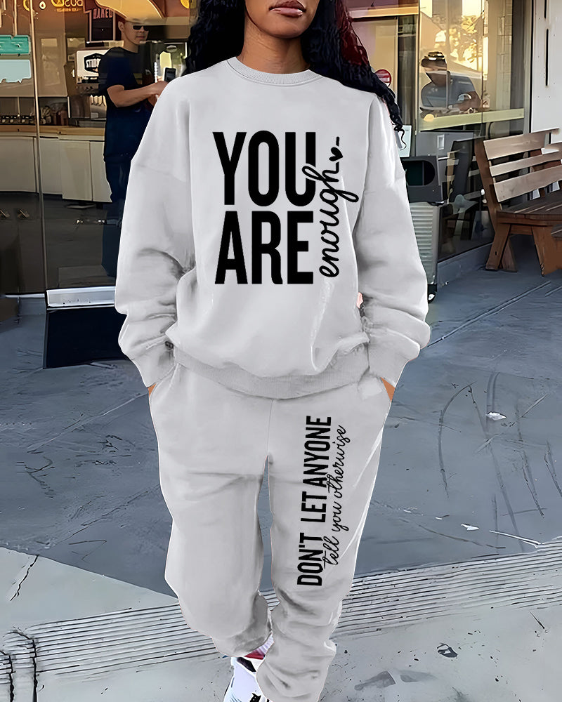 You Are Enough Crew Neck Sweatshirt Two Pieces Set