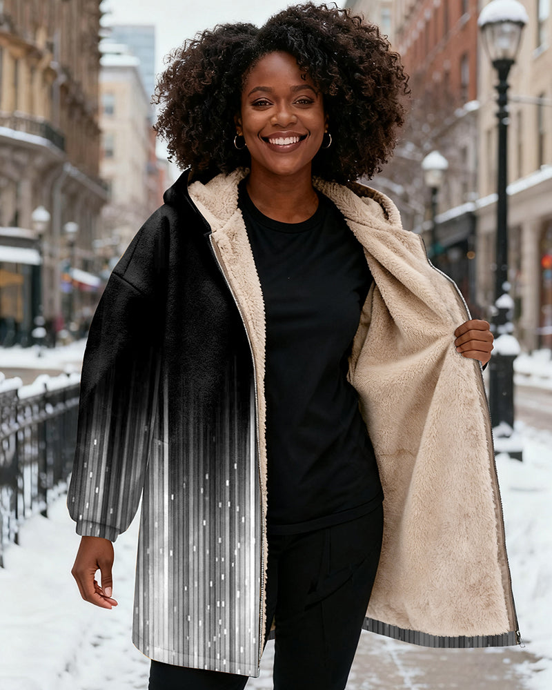 Geometric Stripe Gradient Long Sleeve Zip-Up Fleece Long Coat
