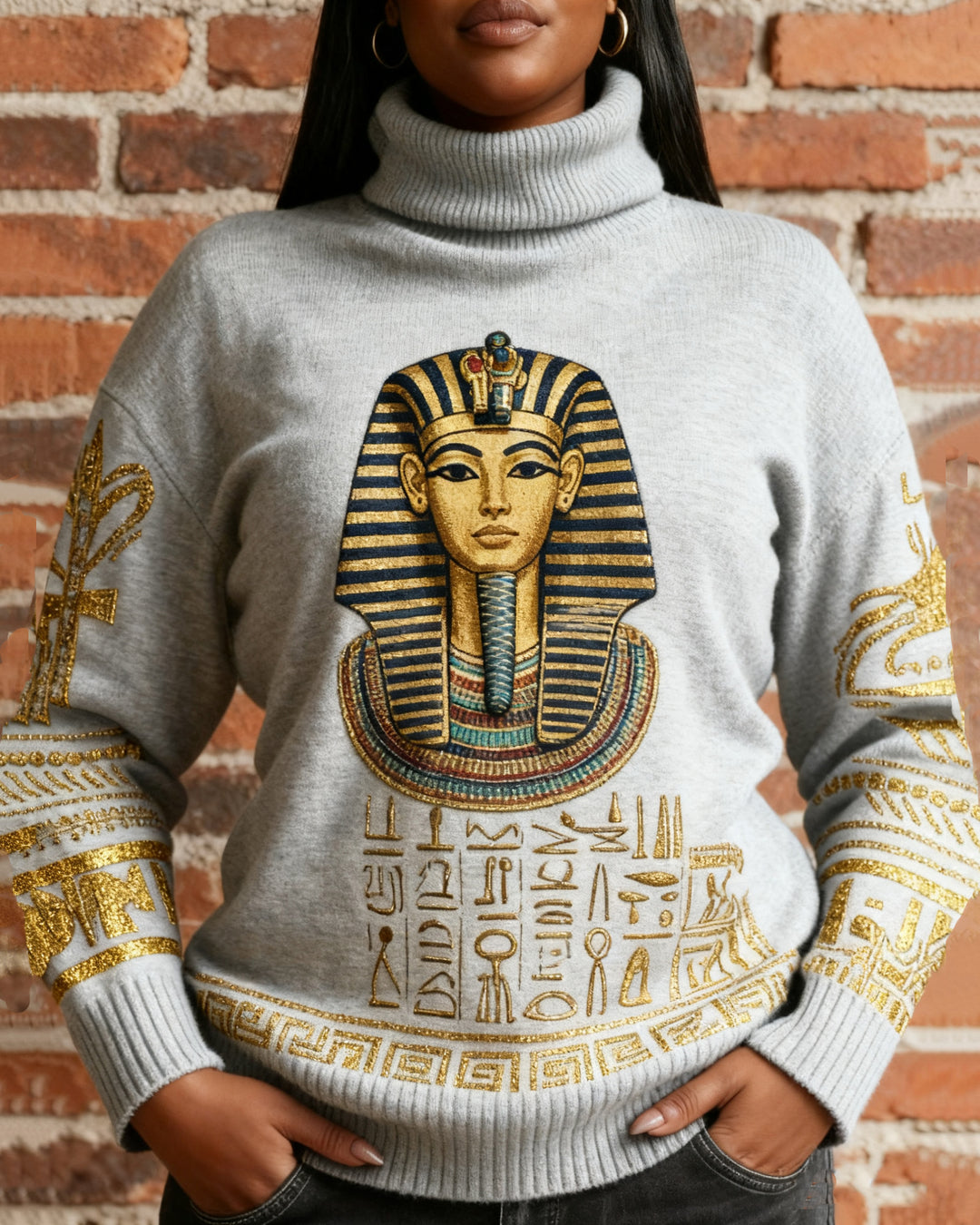Egyptian Totem Cross Turtleneck Long-sleeved Knit Sweater