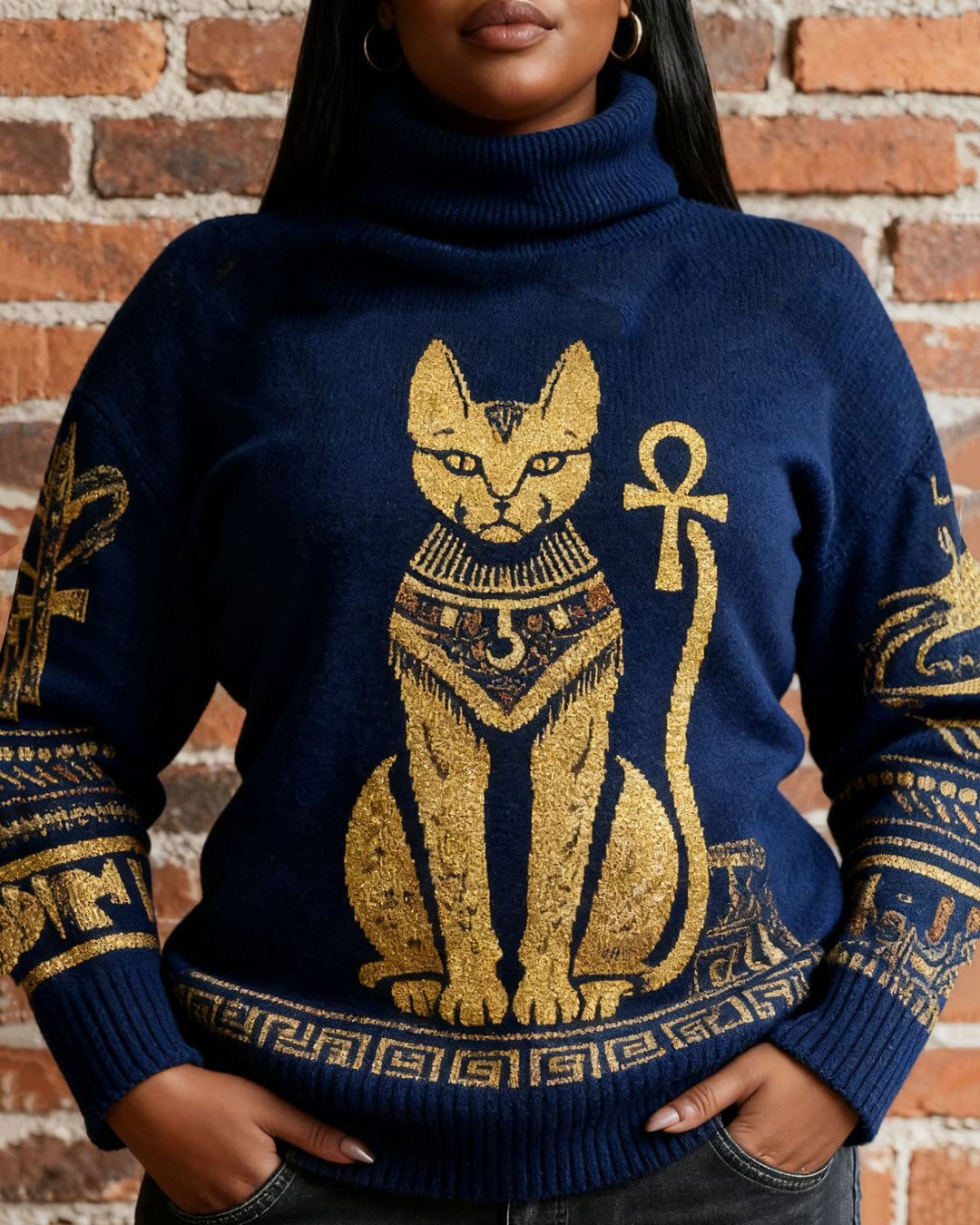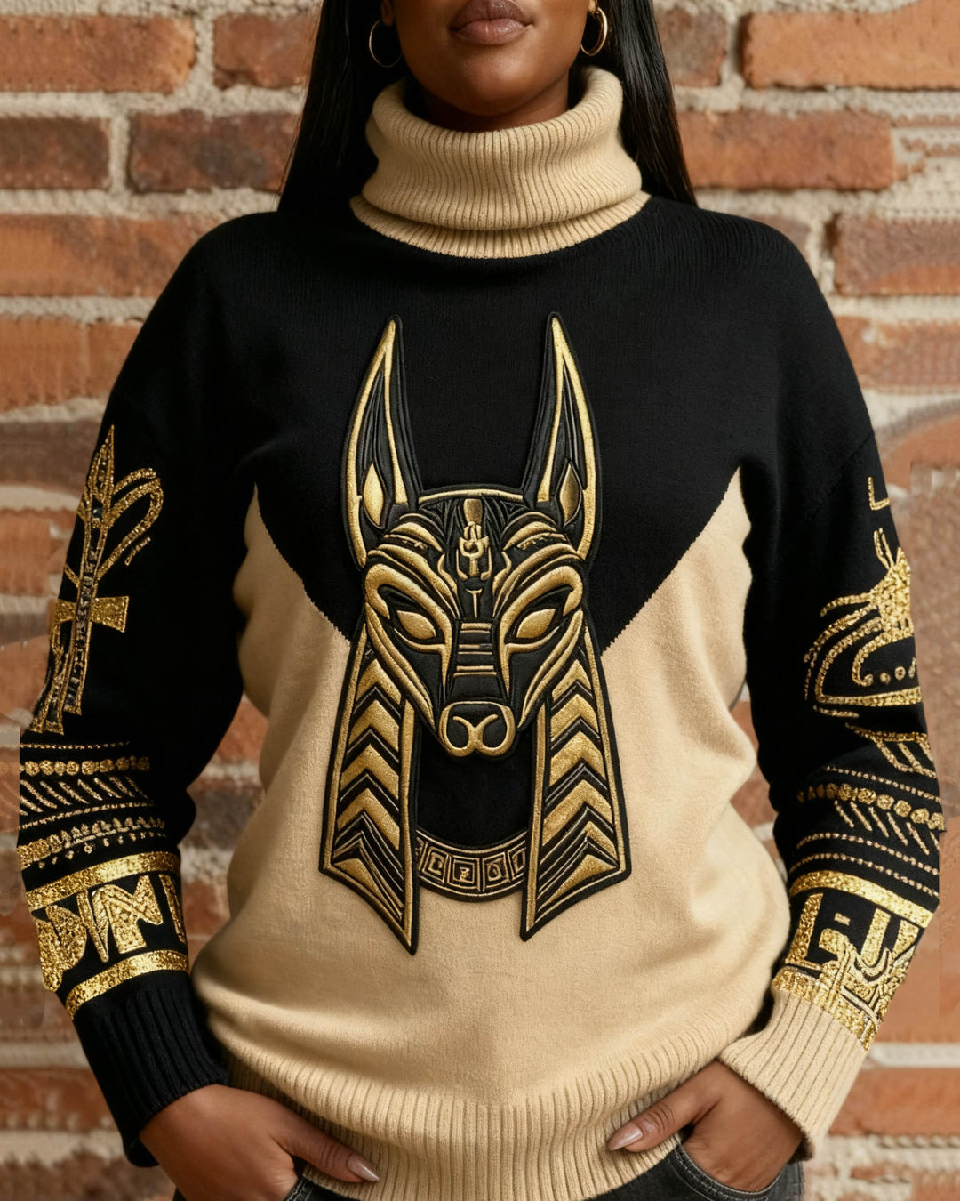 Egyptian Goddess Wolf Totem Turtleneck Long-sleeved Knit Sweater
