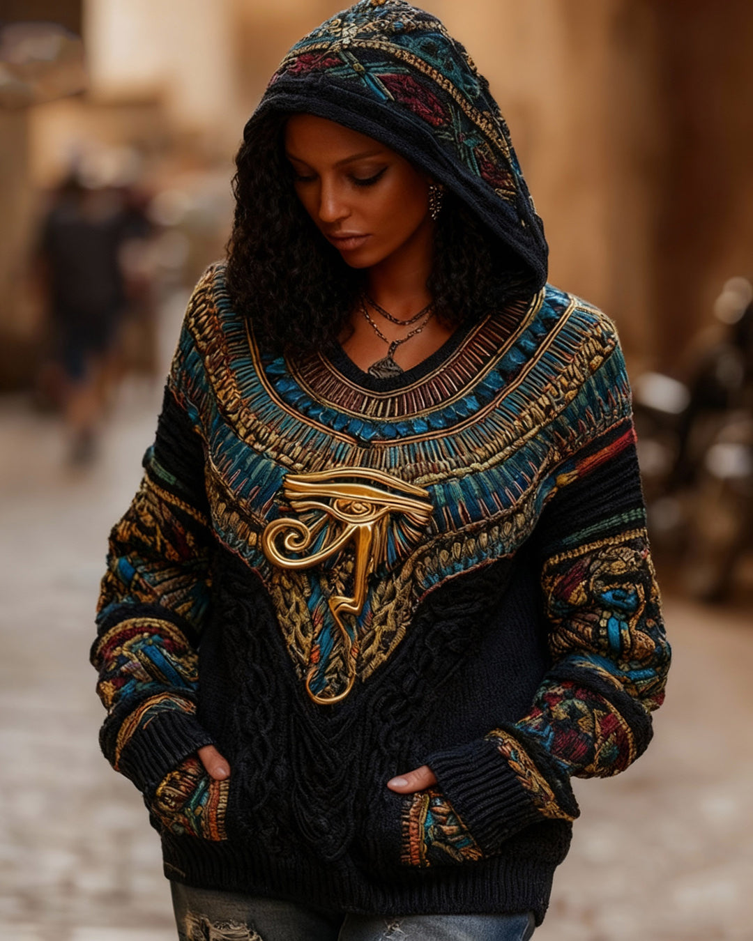 Vintage Ancient Egyptian Eye of Horus Long-sleeved Hooded Sweater