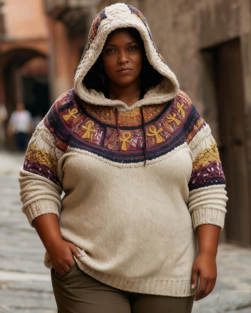 Vintage Egyptian Ankh Cross Long-sleeved Hooded Sweater