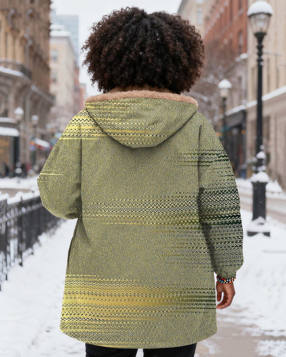 Green Bohemian Stripes Long Sleeve Zip-Up Fleece Long Hoodies