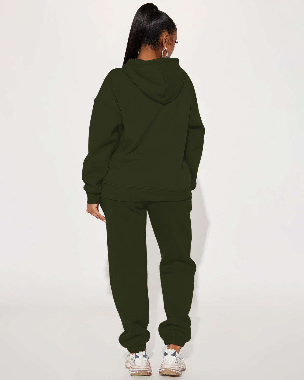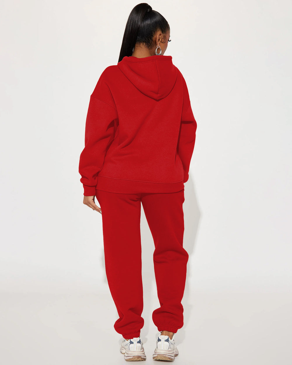 Letter Print Printed Round Neck Long Sleeve Hoodie Two Pieces Set
