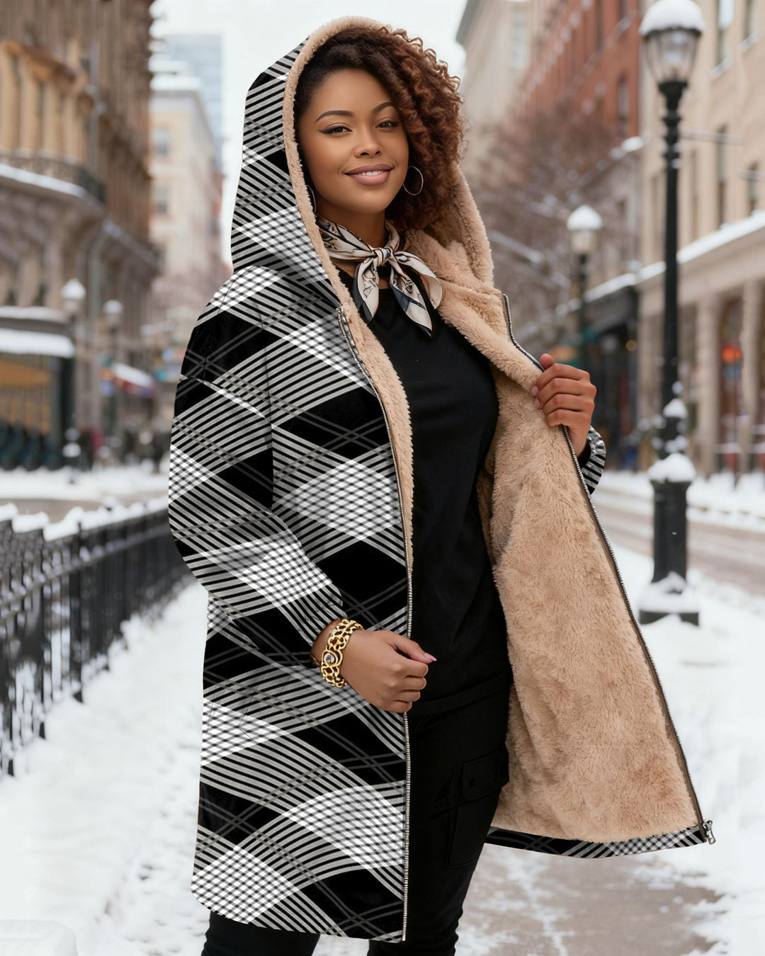 Diamond Elegant Women Fleece Hooded Loose Cape