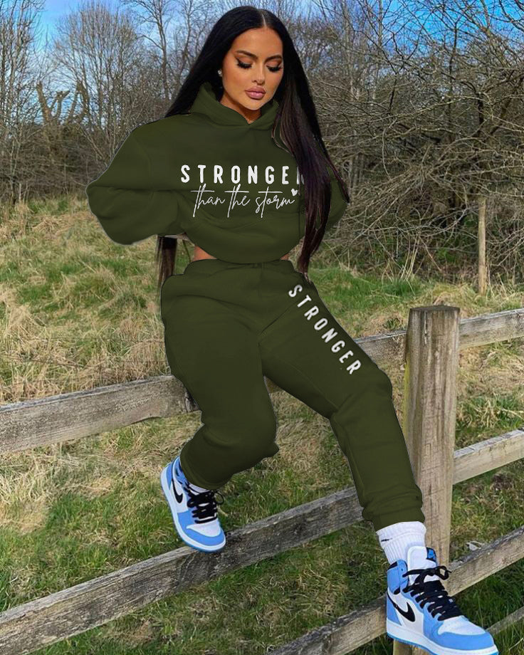 Strong Than The Storm Long Sleeve Hoodie Two Pieces Set
