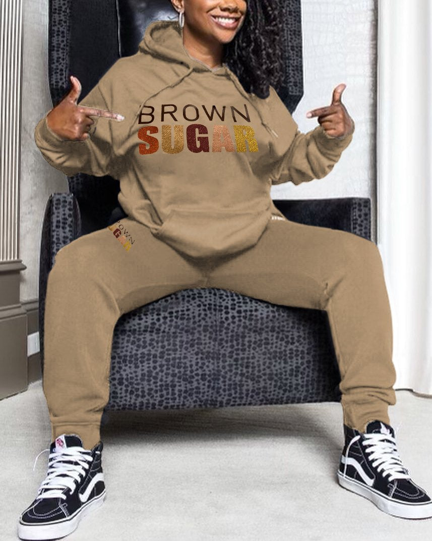 Brown Suger Long Sleeve Hoodie Two Pieces Set