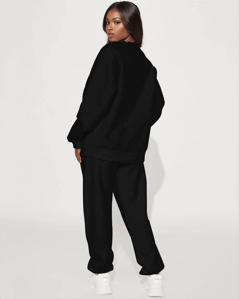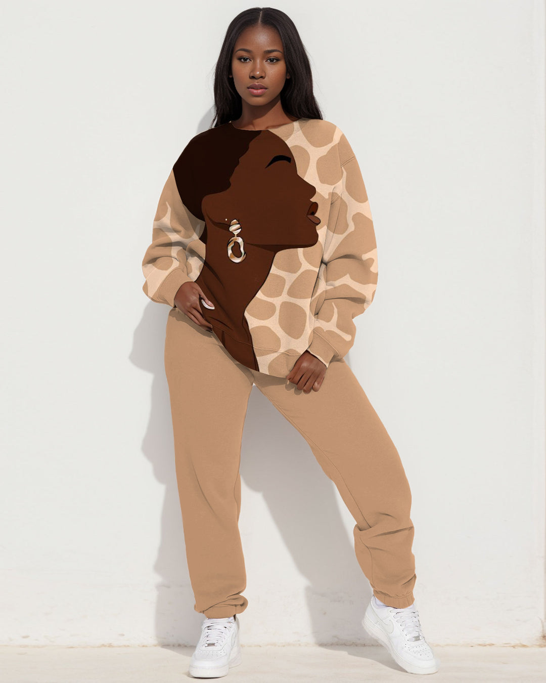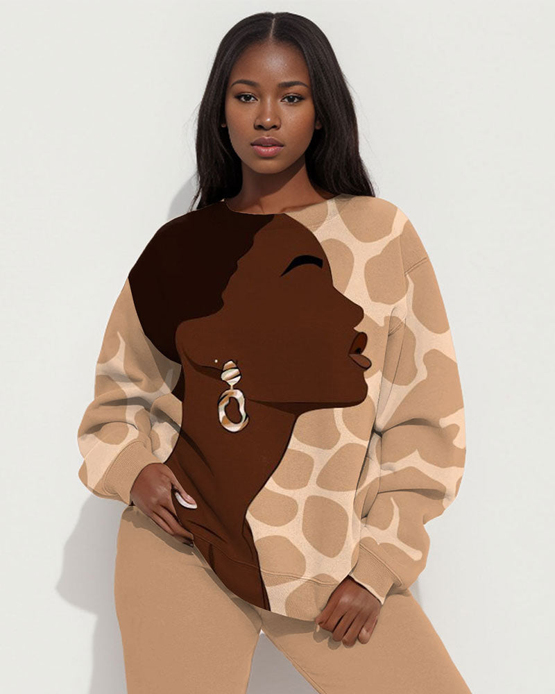 Black girl printed loose round neck sweatshirt and trousers women's suit