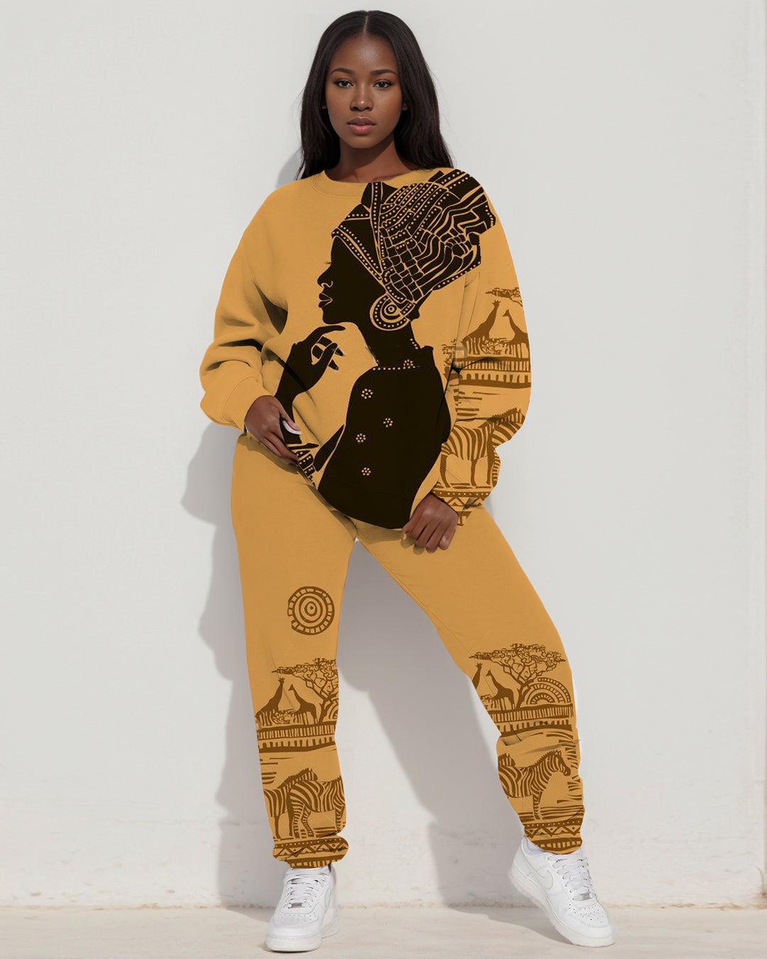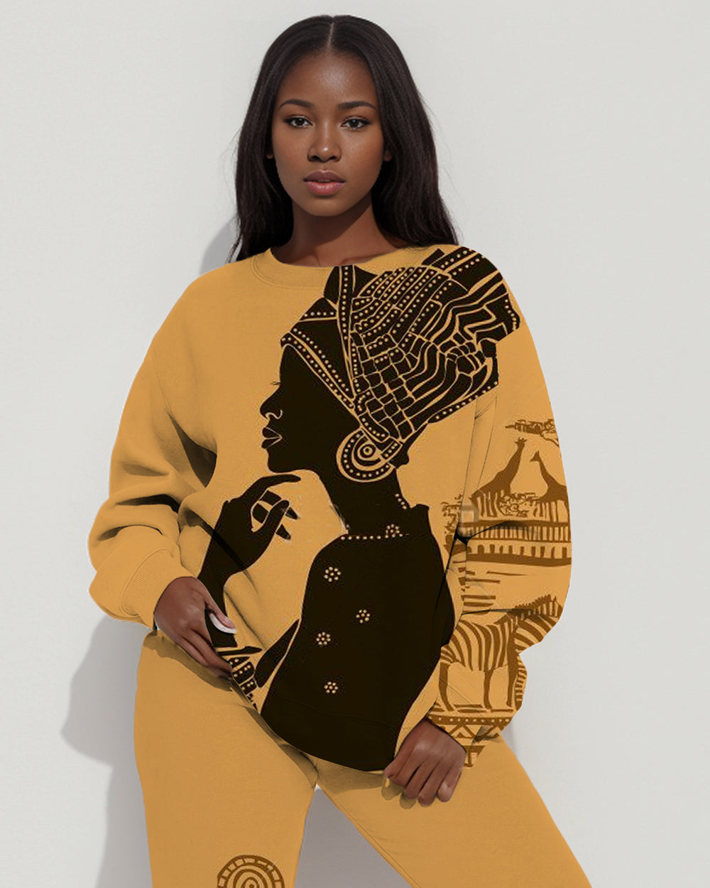 African Women Crew Neck Sweatshirt Two Pieces Set