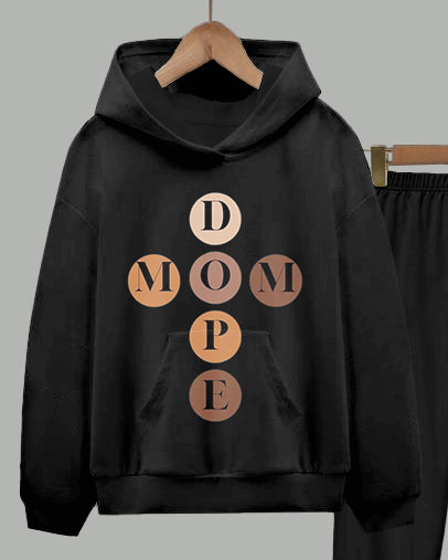Mom Dope Letter Print Long Sleeve Hoodie Two Pieces Set