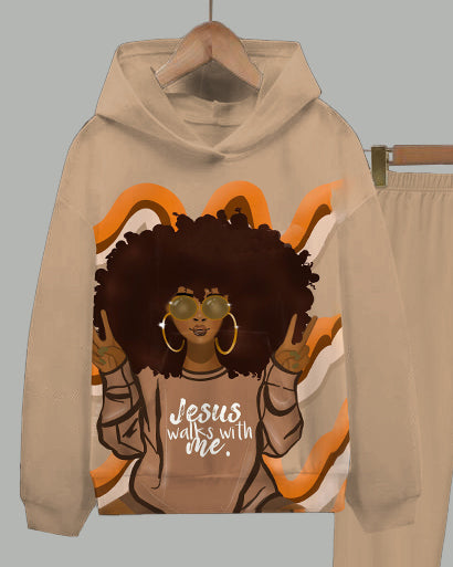 Jesus Walks with Me Long Sleeve Hoodie Two Pieces Set