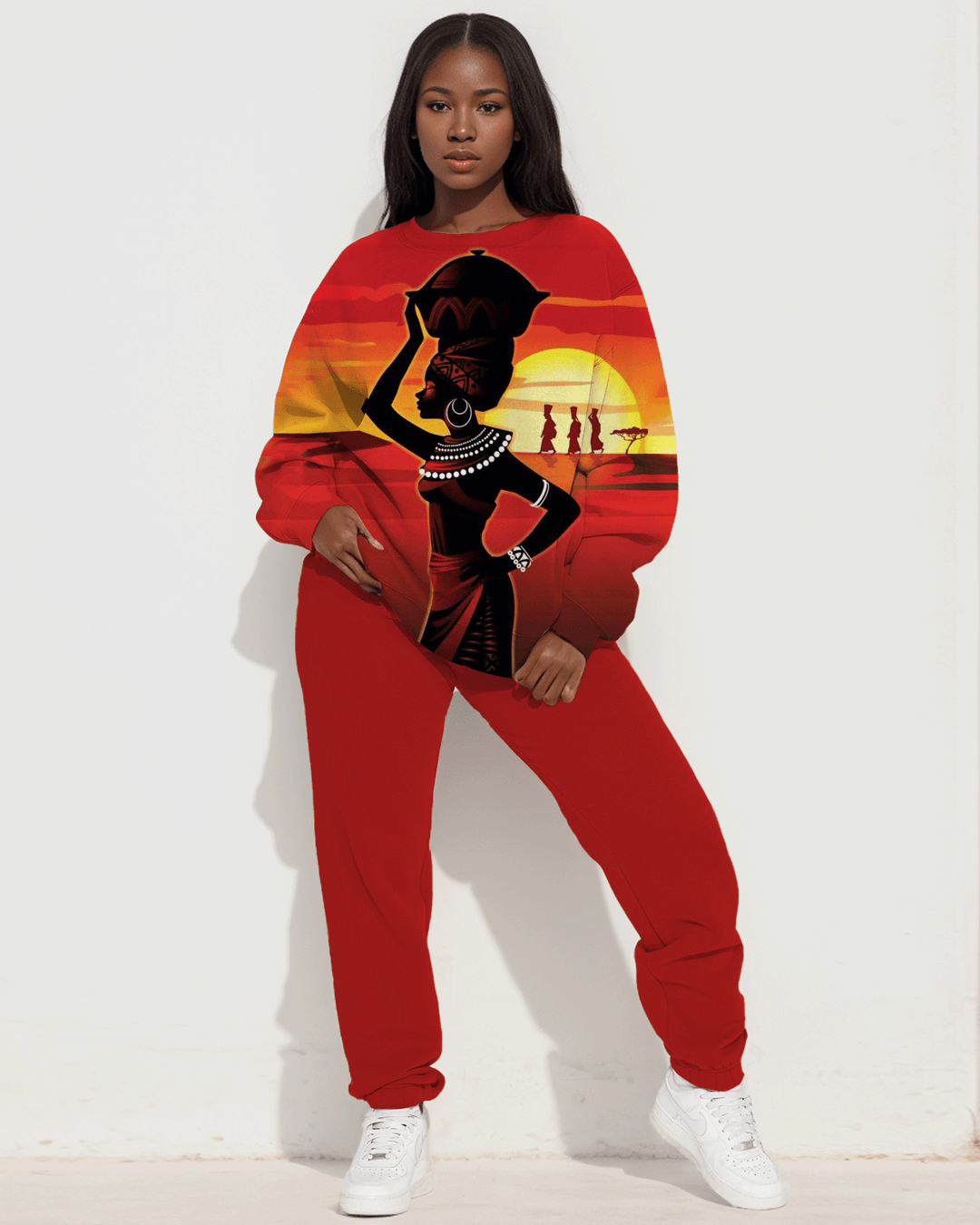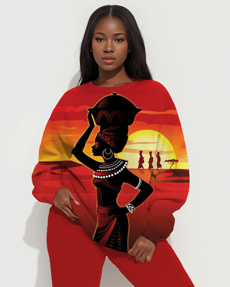 African Women Crew Neck Sweatshirt Two Pieces Set