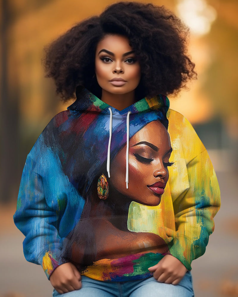 Vintage African Women Oil Painting Long Sleeve Hood Hoodies