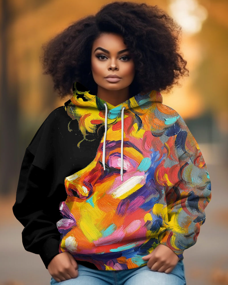 Abstract Minded Beauty Woman Painting Long Sleeve Hood Hoodies