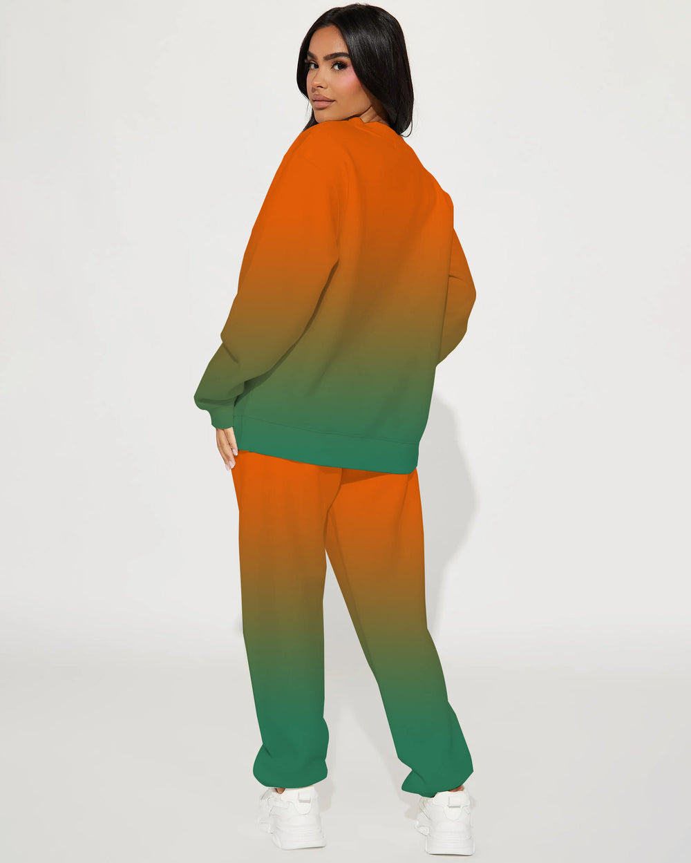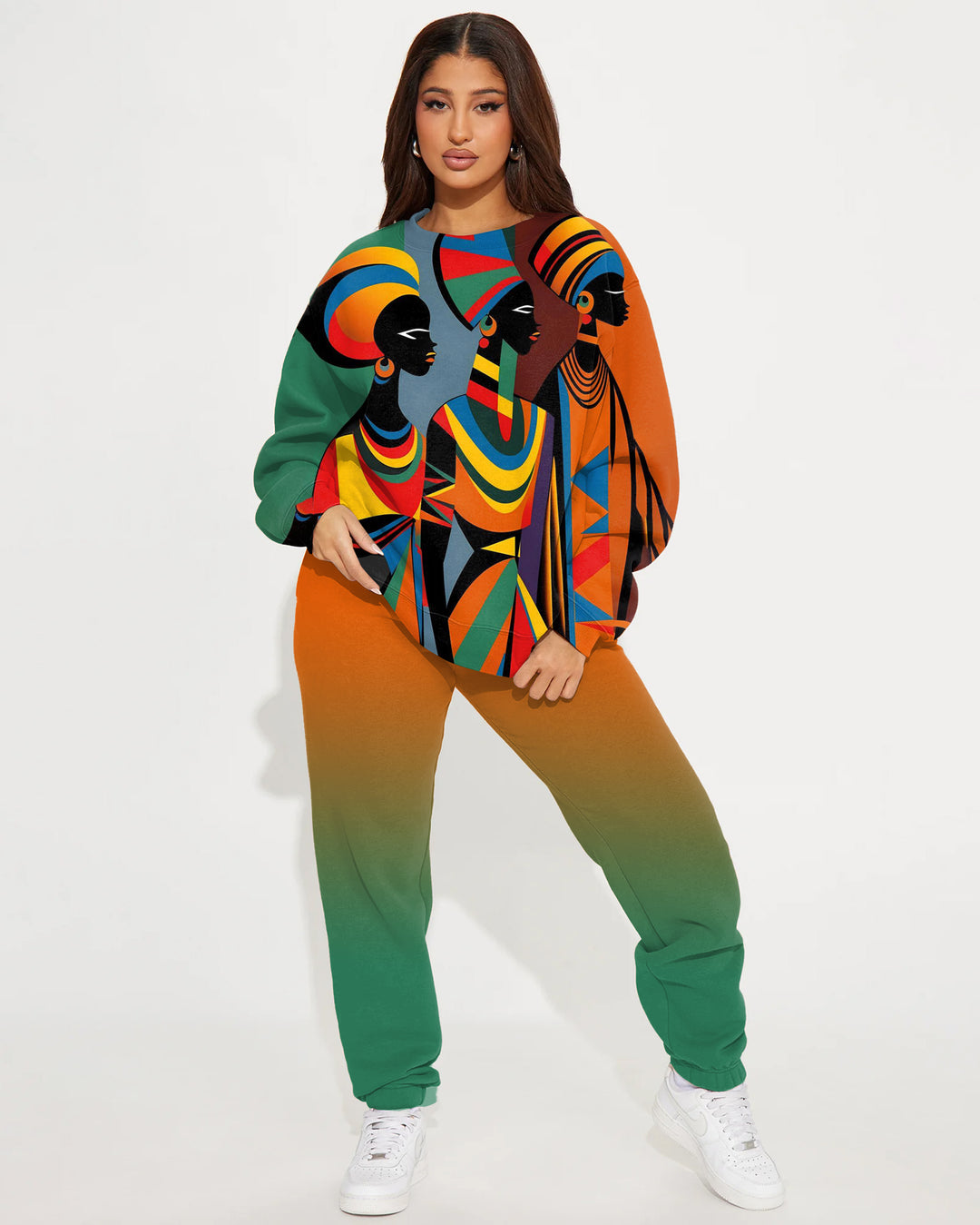 African Lady Gradient Painting Print Long Sleeve Sweatshirt Two Pieces Set