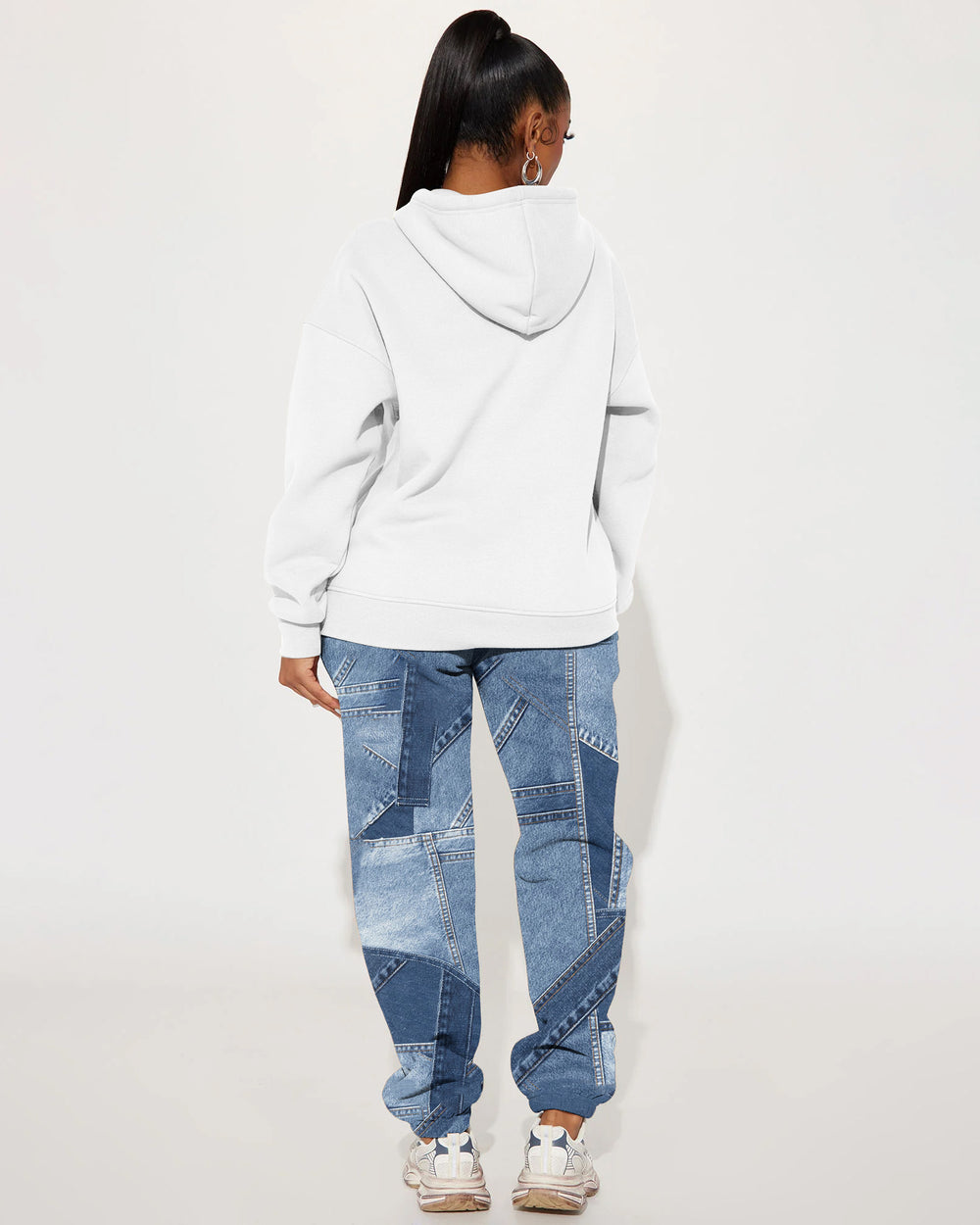 New York Denim Patch Print Crew Neck Sweatshirt Two Pieces Set