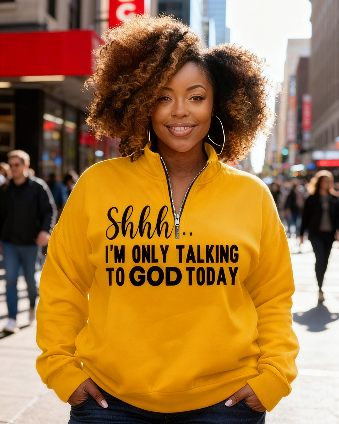 Shhh I'm Only Talking To God Today Stand Collar Zip Up Long Sleeve Sweatshirt