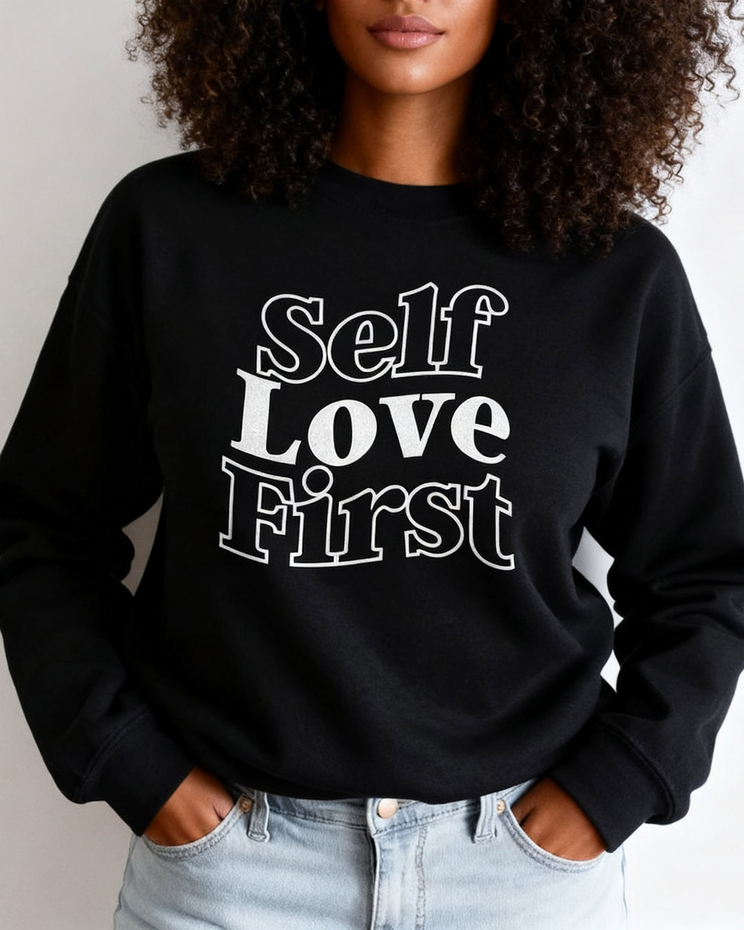 Self Love First Print Crewneck Long Sleeve Sweatshirt
