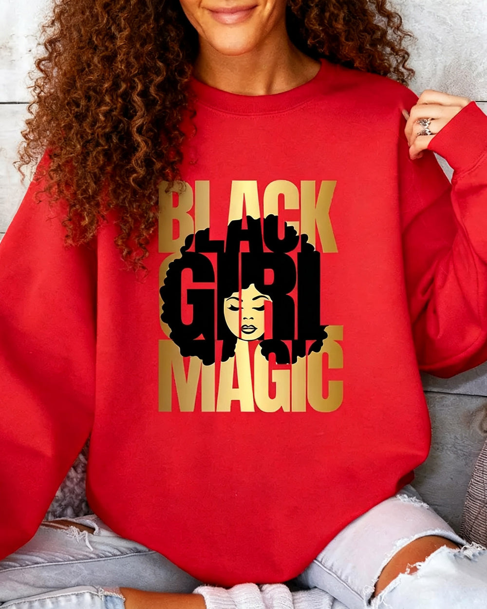 Black Girl Magic Print Crewneck Long Sleeve Sweatshirt