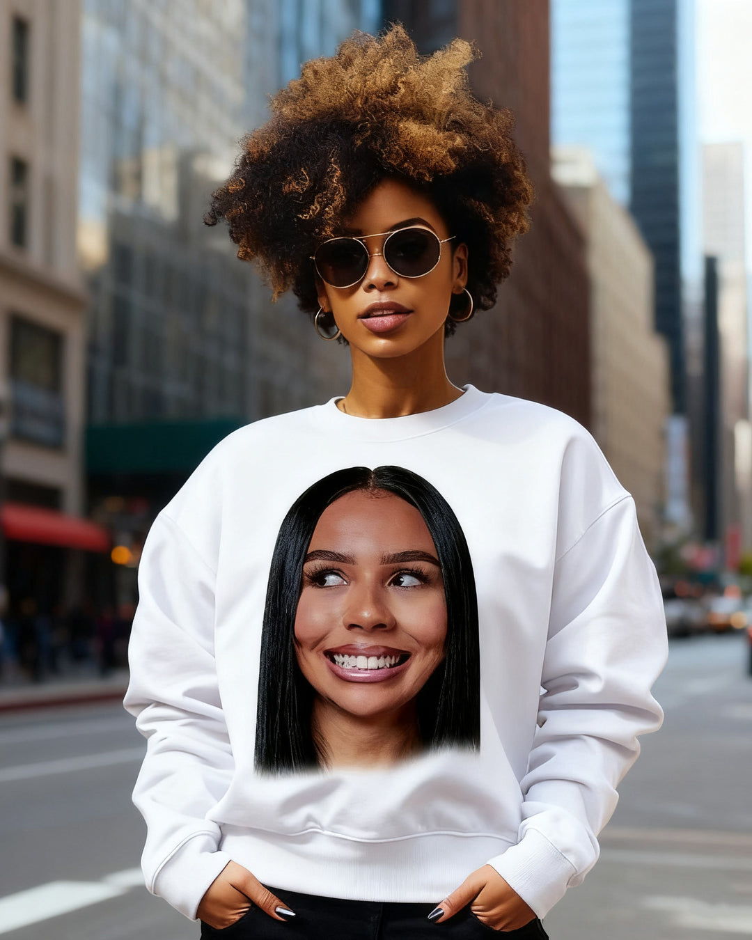 Afro Girl Illustration Crewneck Long Sleeve Sweatshirt