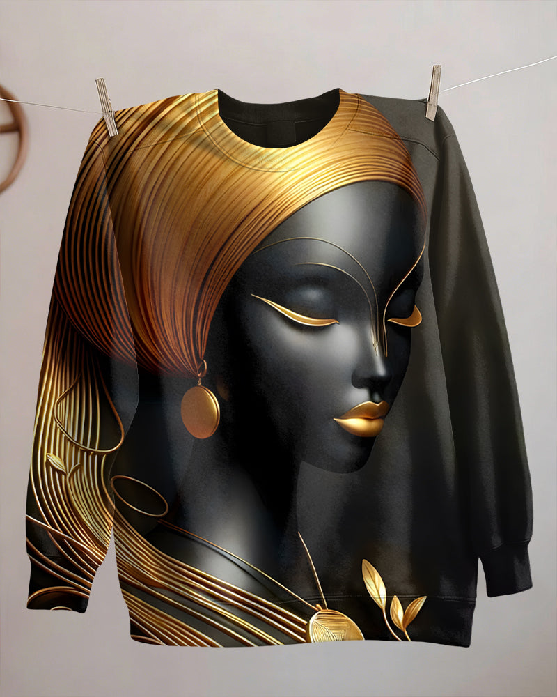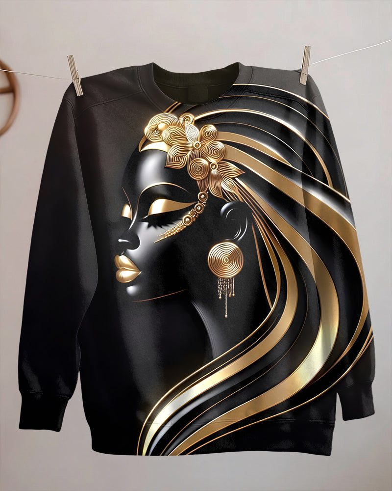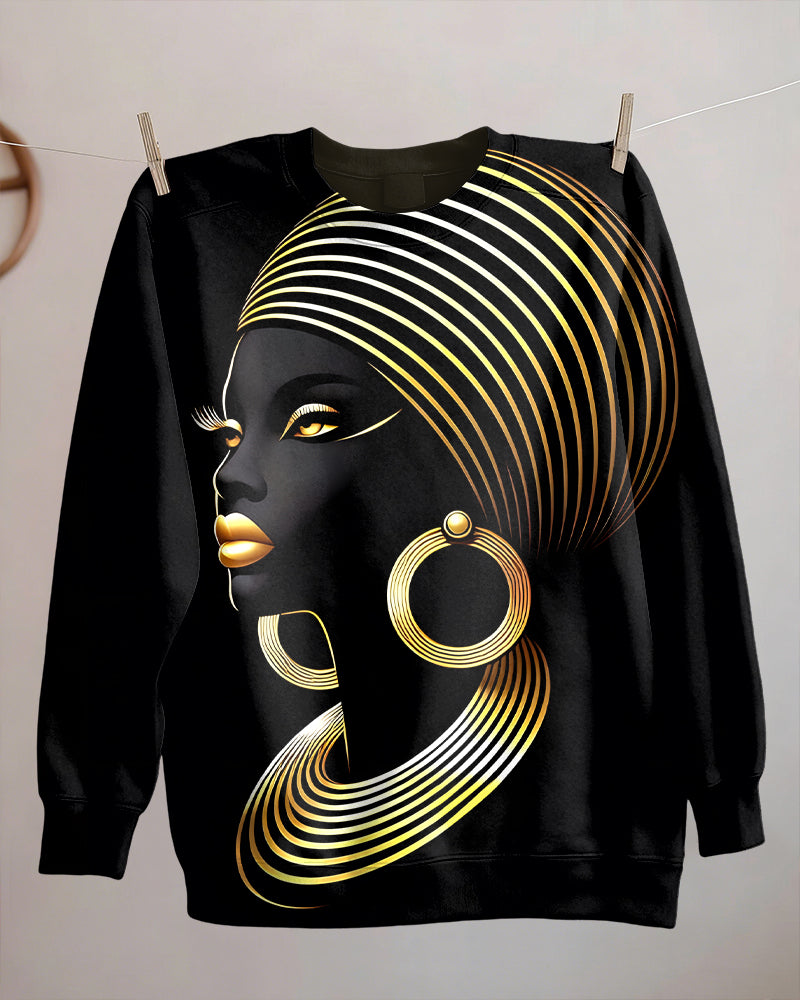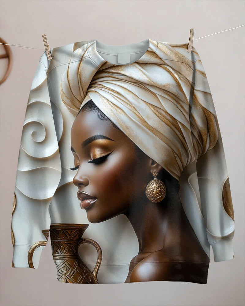 Golden Headscarf with African Women Artistic Print Crewneck Long Sleeve Sweatshirt