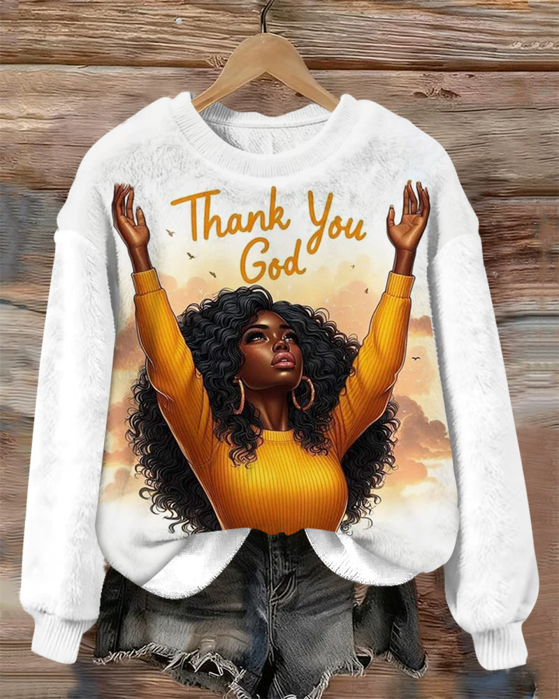 Thank You God Flannel Crewneck Long Sleeve Sweatshirt