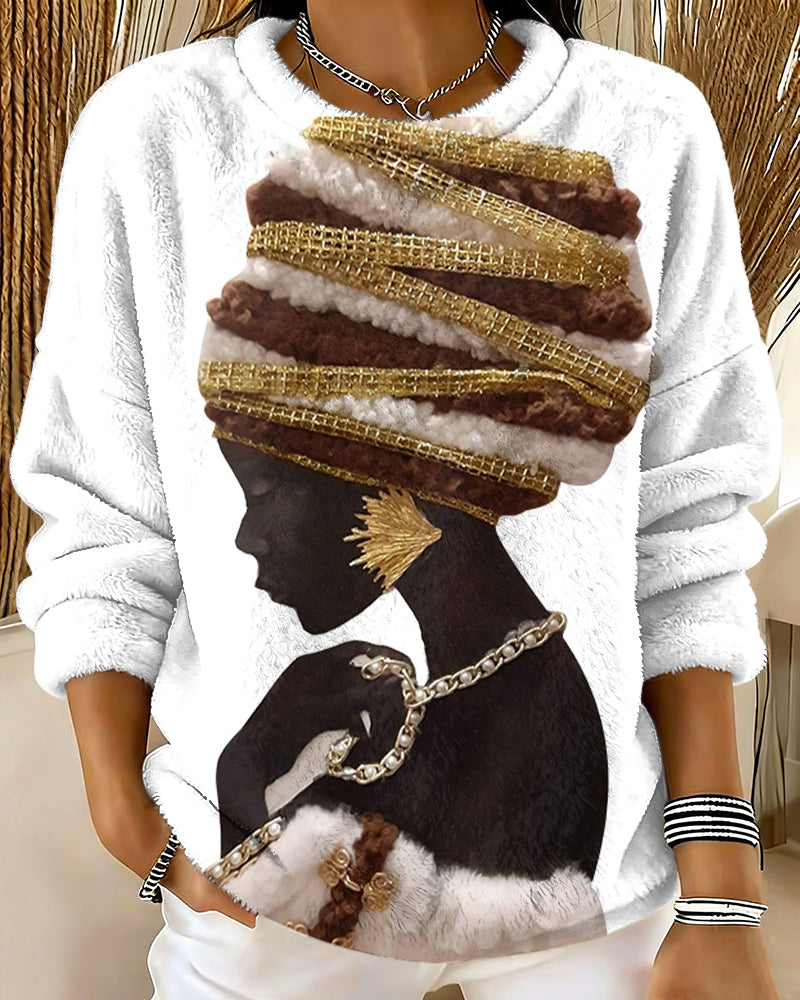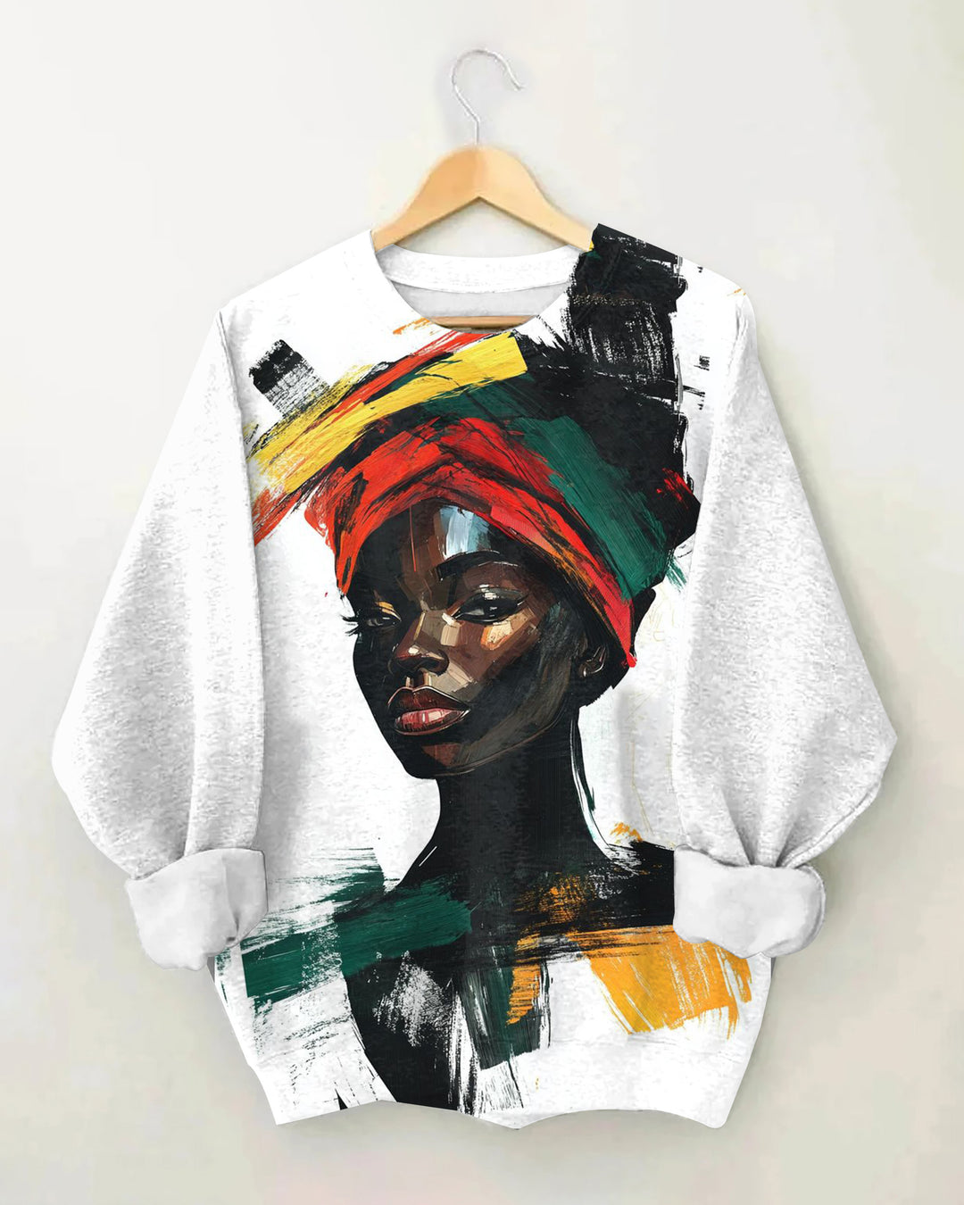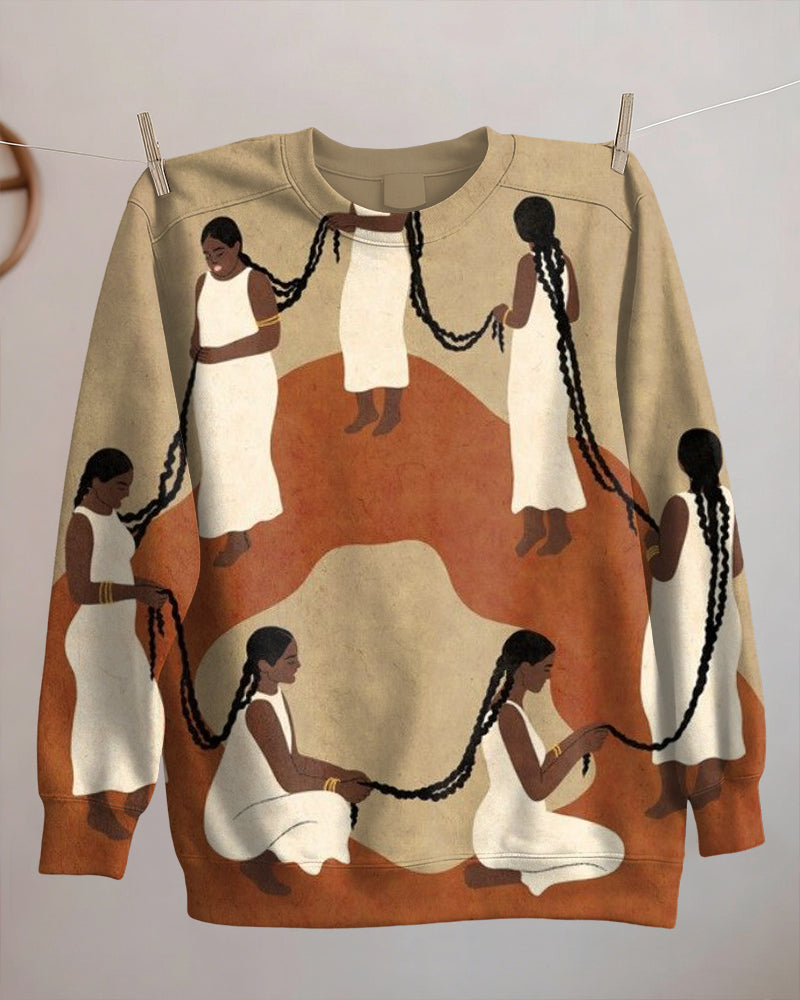 Classic African Women's Art Paintings Flannel Crewneck Long Sleeve Sweatshirt