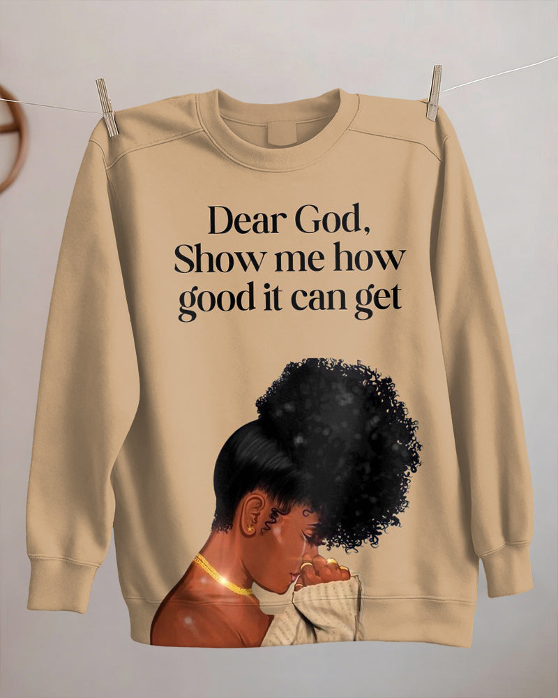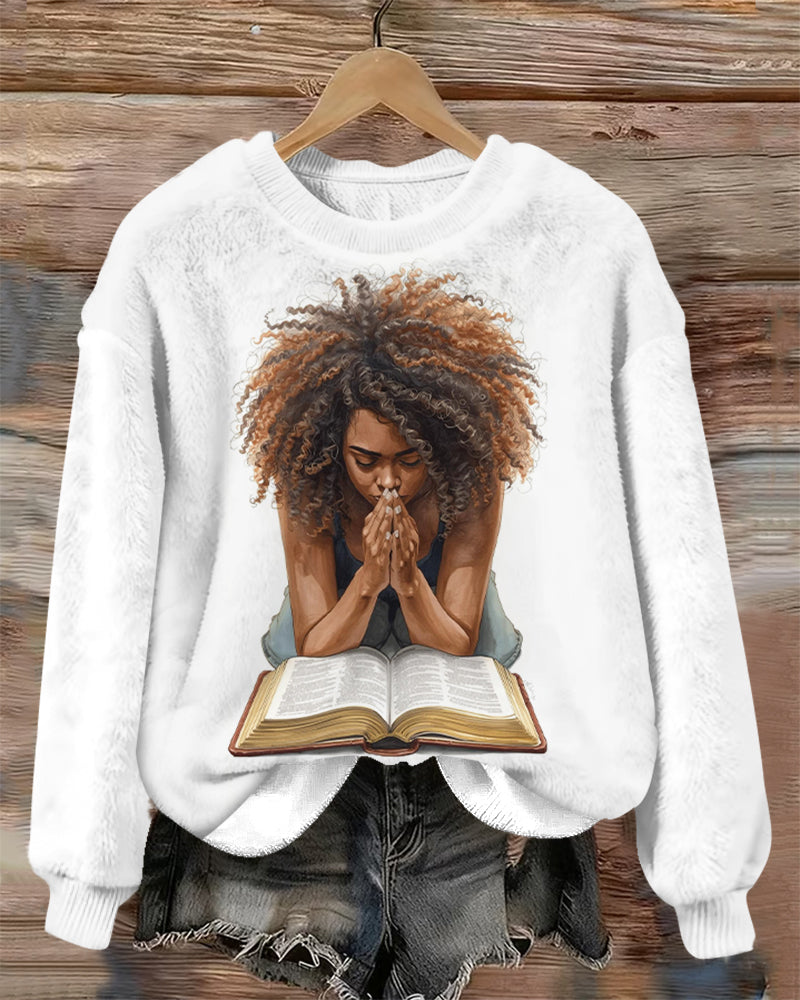Black Women Praying Flannel Crewneck Long Sleeve Sweatshirt