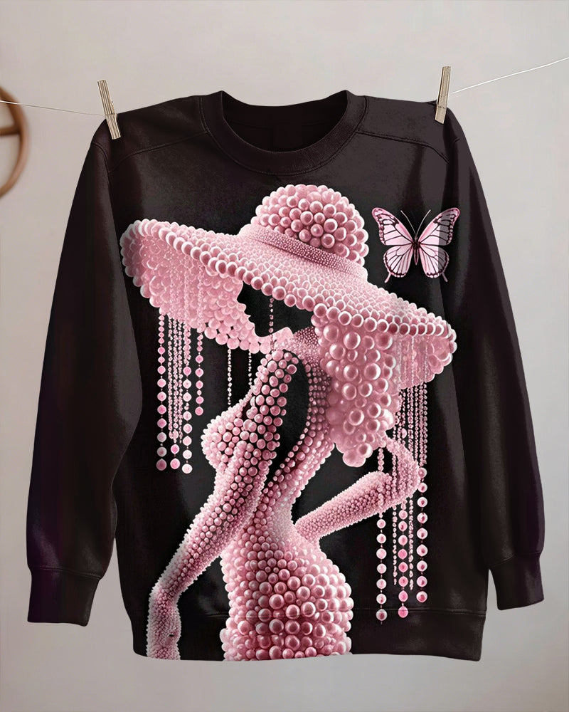 Pink Butterfly Pearl Girl Crewneck Long Sleeve Sweatshirt
