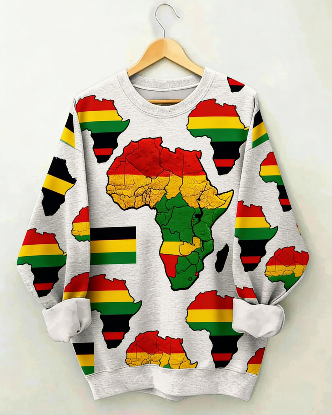 Reggae-colored African Map Crew Neck Long Sleeve Sweatshirt
