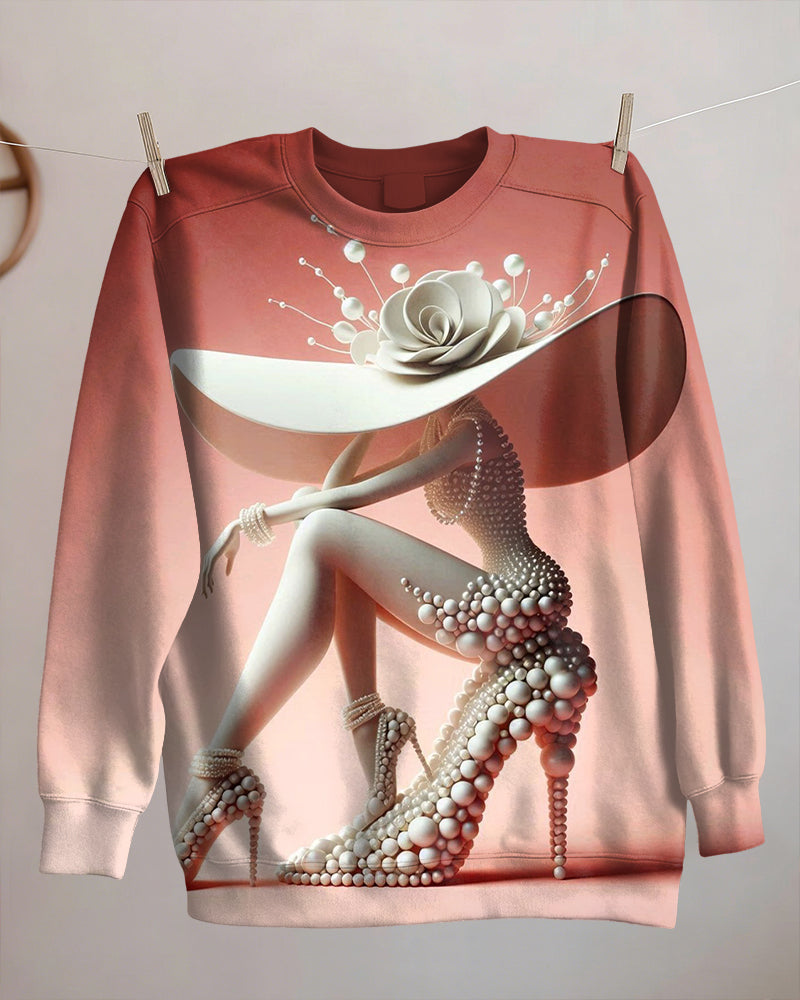 High-heeled Pearl Women Crewneck Long Sleeve Sweatshirt