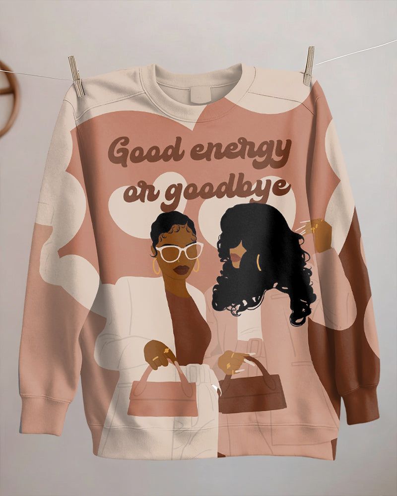 Positive Energy Cartoon Girl Crewneck Long Sleeve Sweatshirt
