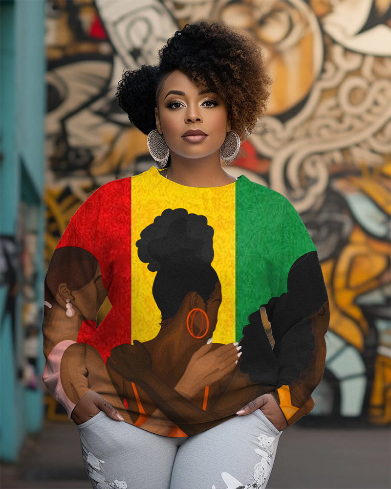 African Lady Typography Portrait Crew Neck Long Sleeve Sweatshirt