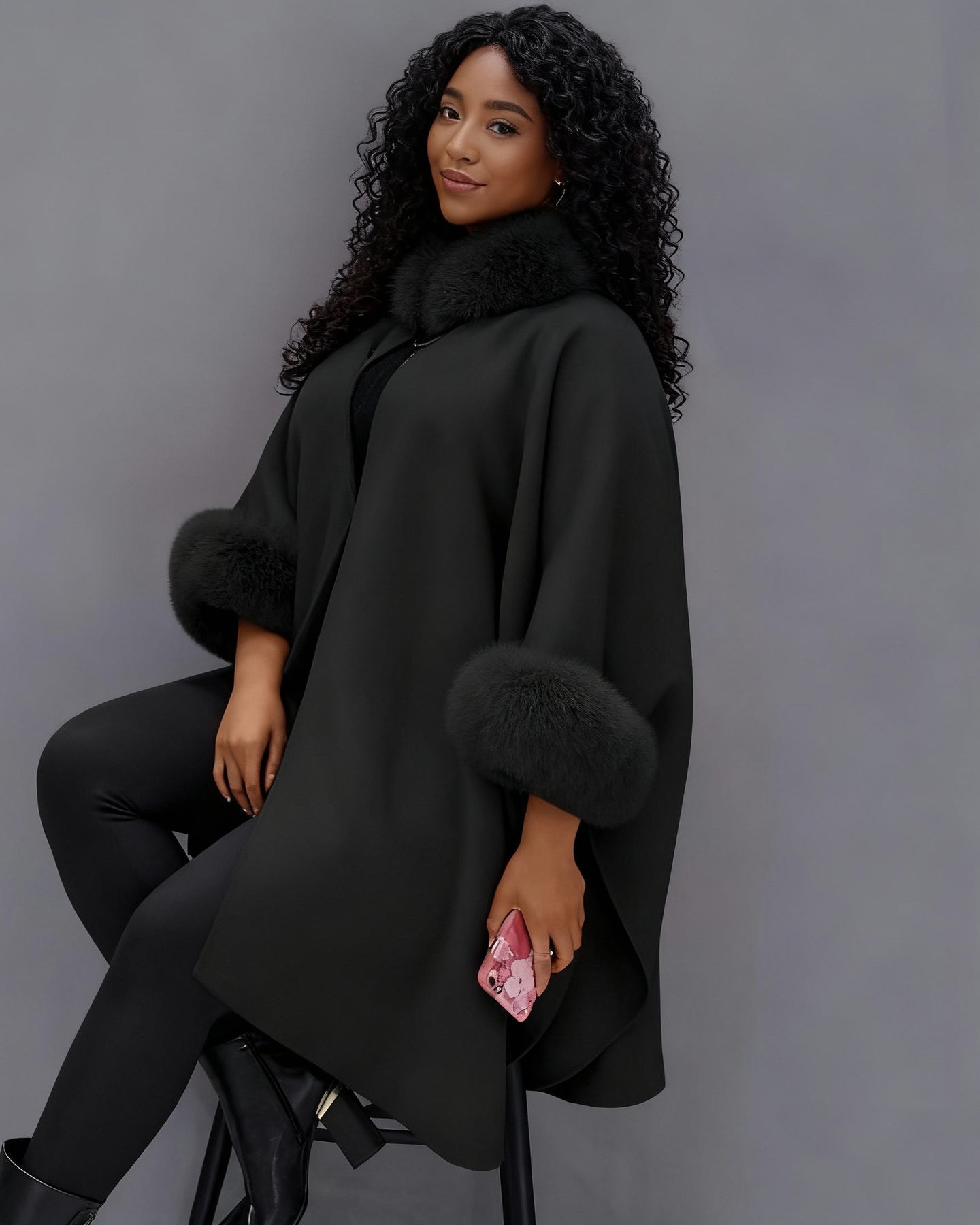 This slim-flattering poncho coat marries fashion with daily ease: its tailored (yet cozy) silhouette fits seamlessly into casual routines, while soft wool + fur trims keep you warm and stylish. Perfect for running errands, meetups, or lazy weekends—effortless chic every day!